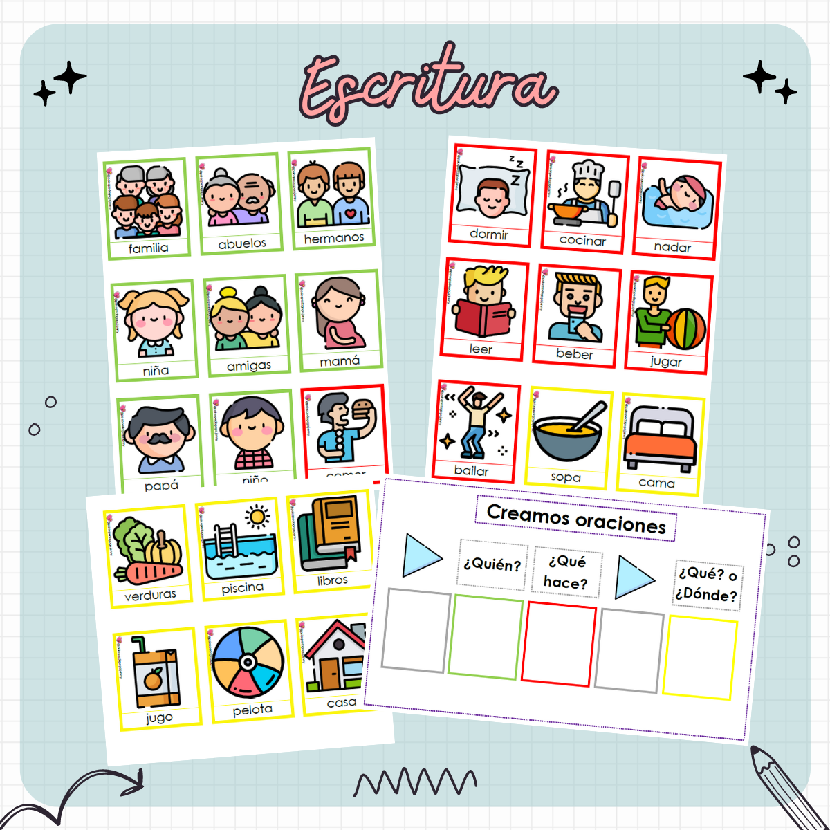 Este material es ideal para estructurar oraciones y trabajar a nivel morfosintáctico.
